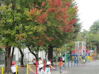 晴れた日の校庭。最近は、虫捕りをしている子どもが低学年に多くいます。
