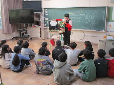 地域の方をゲストティーチャーにお迎えし、音楽の授業(4年生)で三味線体験を行いました。