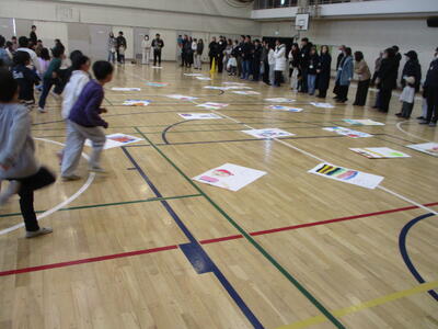 学校公開日に、体育館でかるた大会を行いました。