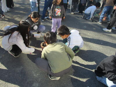 学校公開日に、校庭で七輪体験を行いました。