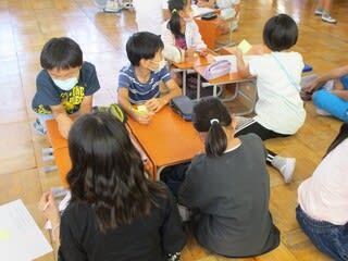 考えたことを意見交換する子供たち。