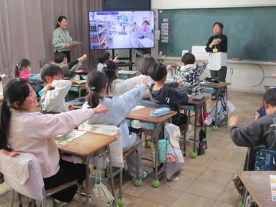 2時間目の最初には、体を使っての脳トレです。