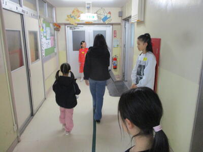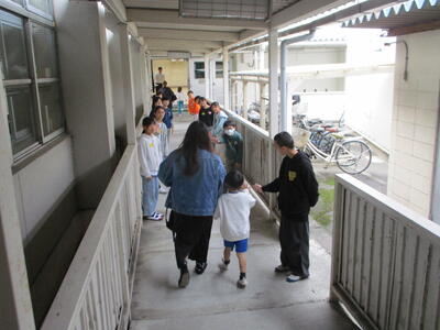 「こんにちは!」明るいあいさつの後は、案内をしてくれました。高学年に向け、良いスタートが切れたようです。