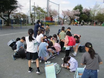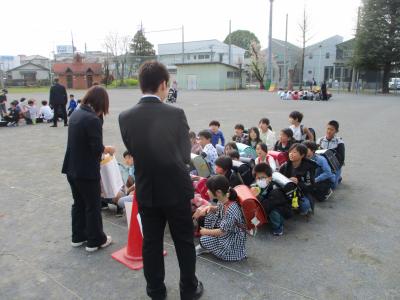 その後は、いよいよ担任発表。校庭のあちらこちらに分かれ、新しい担任と初めての出会いの時間です。