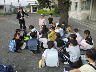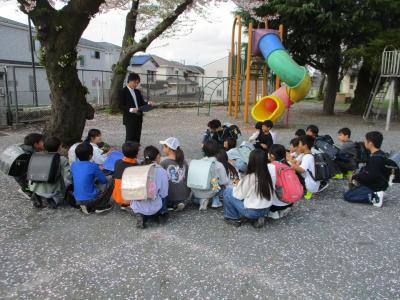 校庭の桜の木も、子どもたちの登校を待っていたかのように、美しい花がたくさん残っています。